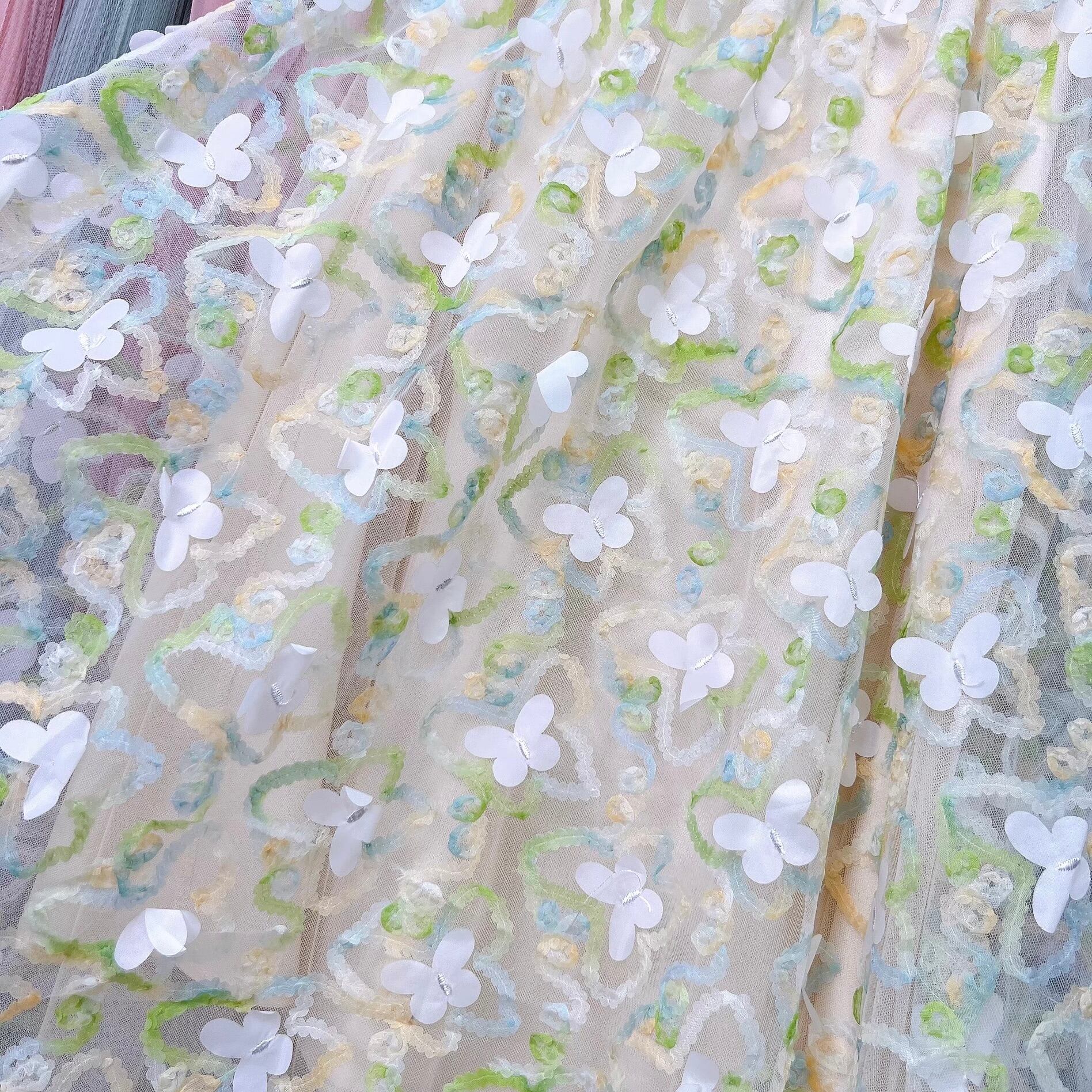 チュール素材花柄刺繍ミディ丈スカート A00464