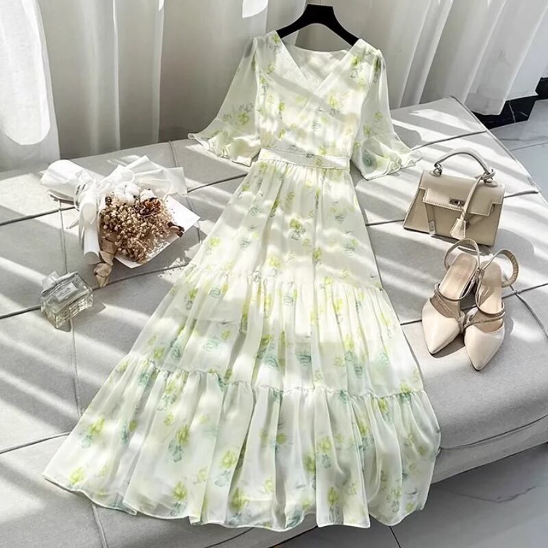 花柄カシュクールティアードワンピース A00174
