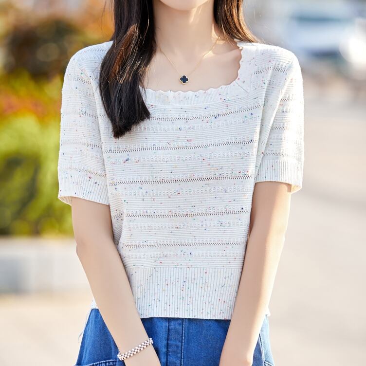 スクエアネックメランジニット A00234