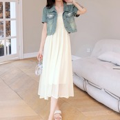 繊細な花柄刺繍がデニムのクールさと絶妙にマッチし、女性らしさを引き立てます。
