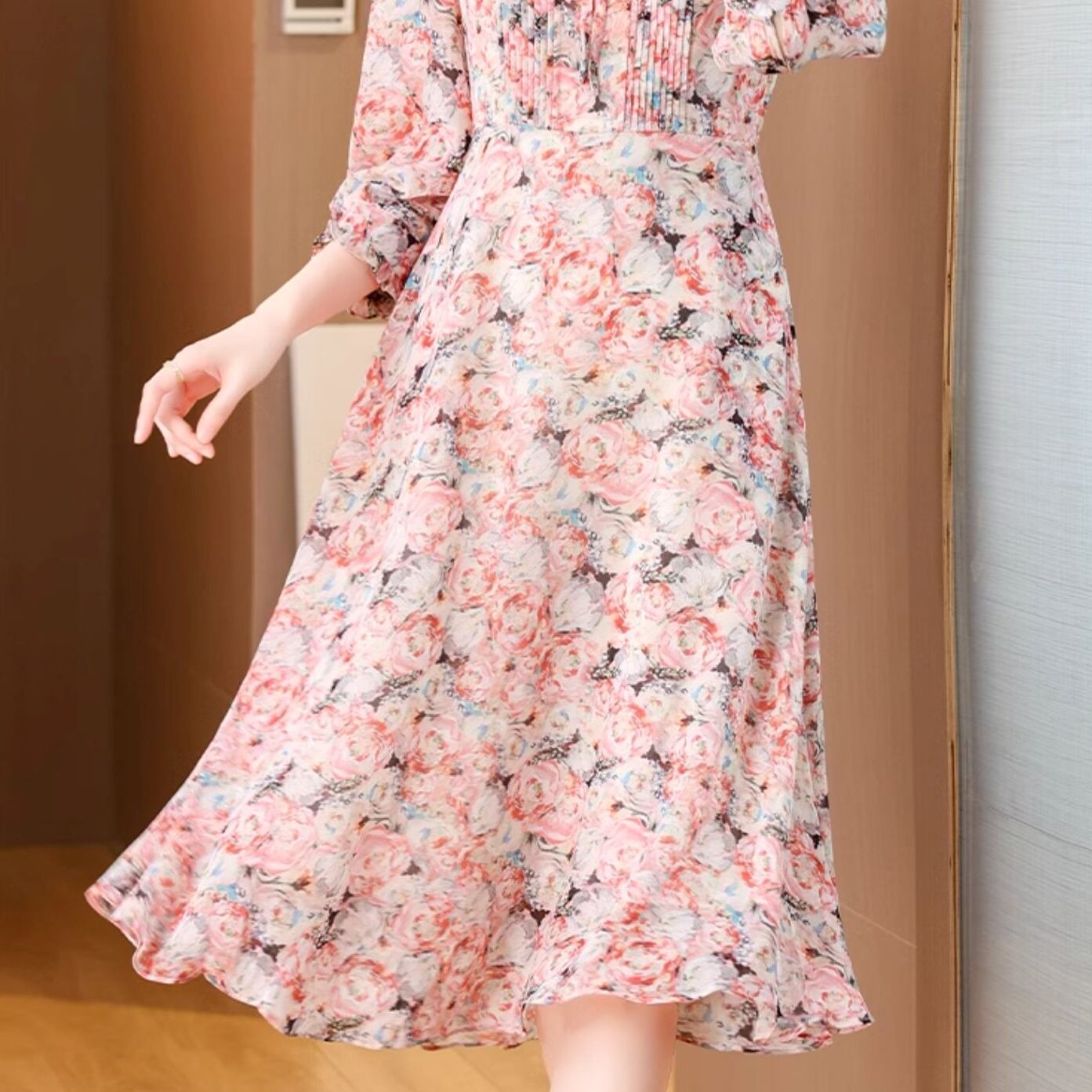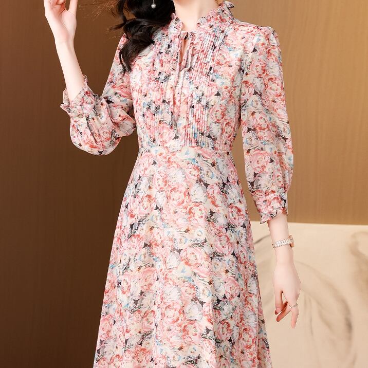 軽やかで柔らかなシフォンとエレガントなフローラルプリントで、女性らしい魅力を引き立てます。