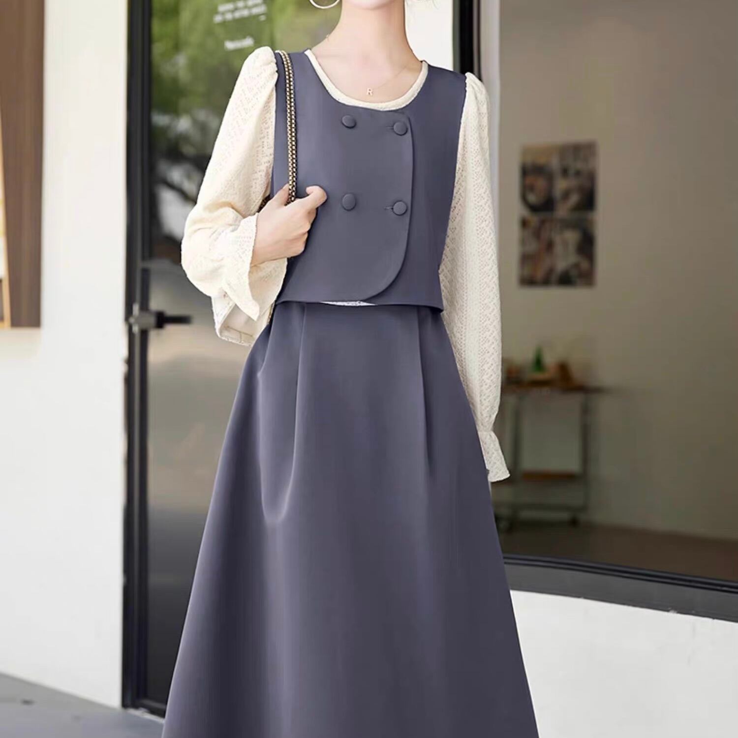 重ね着風のスタイルがこれ一着で完成し、忙しい朝でもおしゃれなコーディネートが簡単に楽しめます。